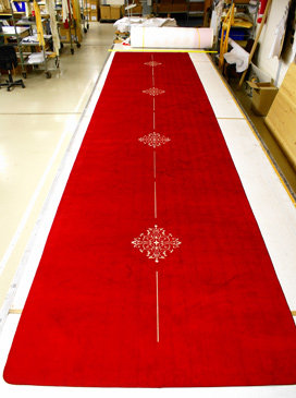 Der von Ihnen ausgewählte Läufer wird zunächst mit Ihrem Wunschdesign bestickt, dann mit dünnem Schaumstoff beschichtet und zum Schluß am Rand verkettelt. Jeder Arbeitsschritt wird von unserer Partnerfirma medihome textil streng überwacht und kontrolliert. Nur perfekt bestickte Läufer dürfen das Erzgebirge verlassen und werden dann per DPD auf die Reise geschickt.